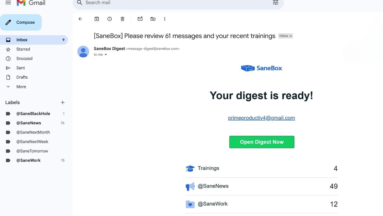 Gmail with SaneBox Active