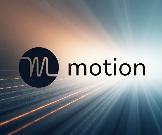 Motion's AI automatically schedules and reschedules tasks throughout your day, filling available time slots for maximum productivity. The dense time-blocking works excellently for ADHD support but can overwhelm during energy crashes. Screenshot source: Motion official logo on a blue and orange lights background