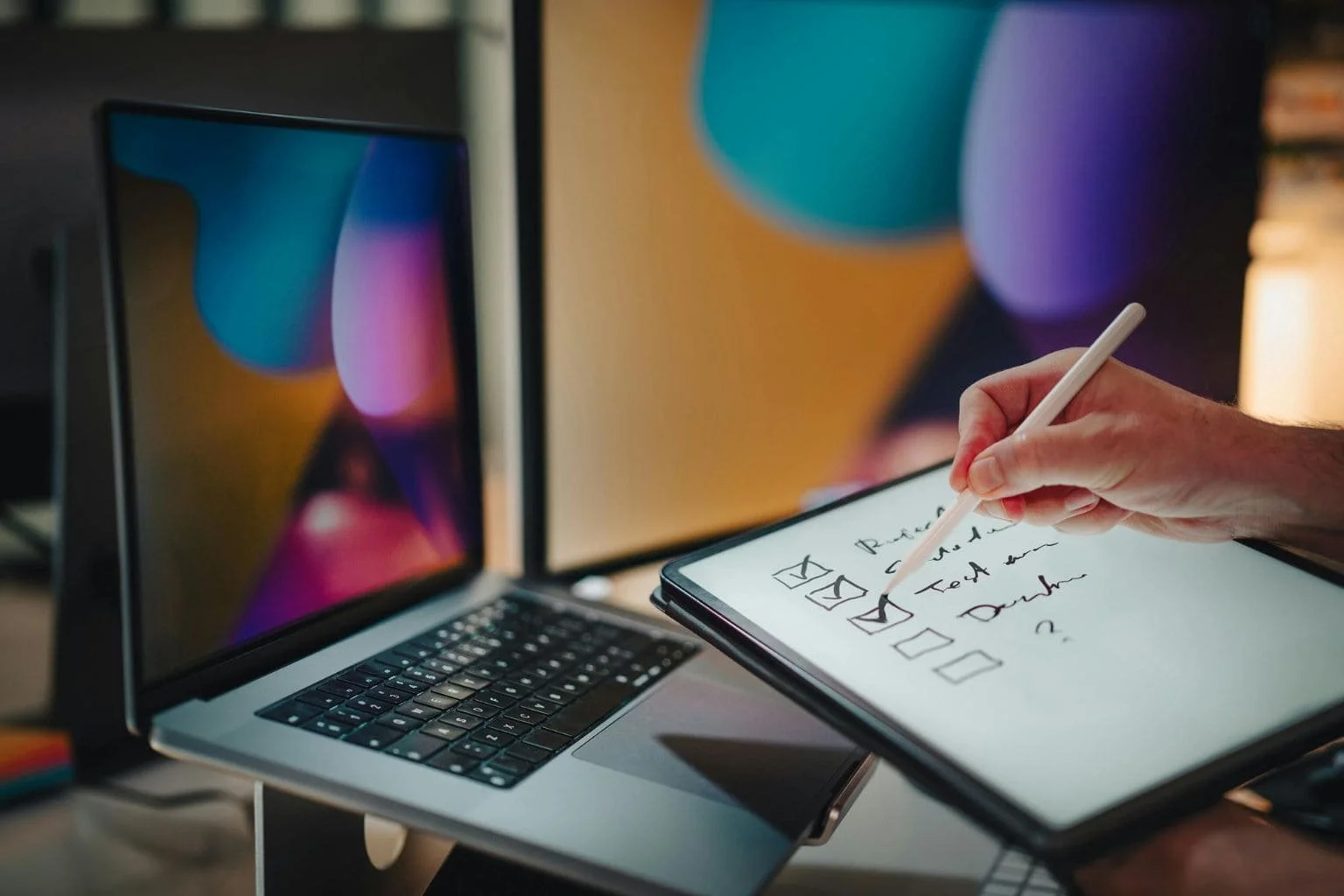 Laptop and tablet with task management app open, designed for remote workers with MS or chronic illness